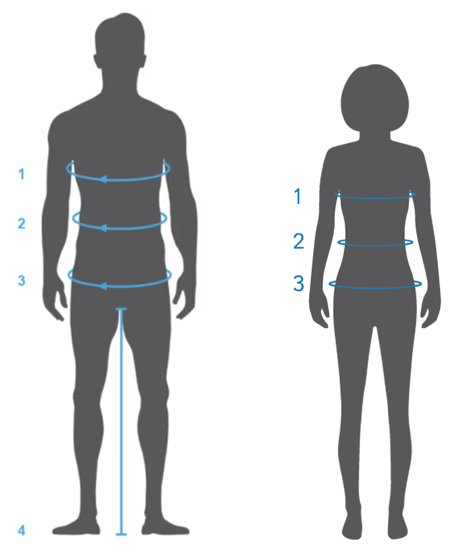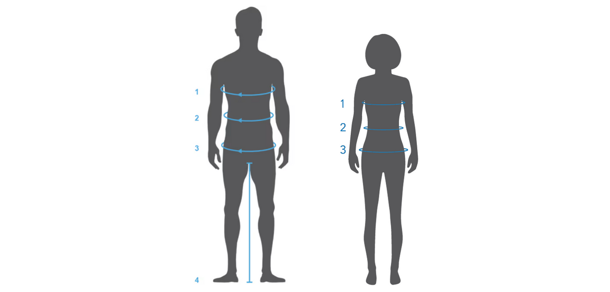 To find your recommended men's top size, use a measuring tape to measure around the widest part of the chest. To find your recommended men's bottoms size, use a measuring tape to measure around the waist.