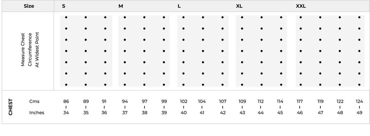 CLOTHING SIZE | SHIRT MEASUREMENT - CHEST (CM) | TROUSER MEASUREMENT - WAIST (CM) |