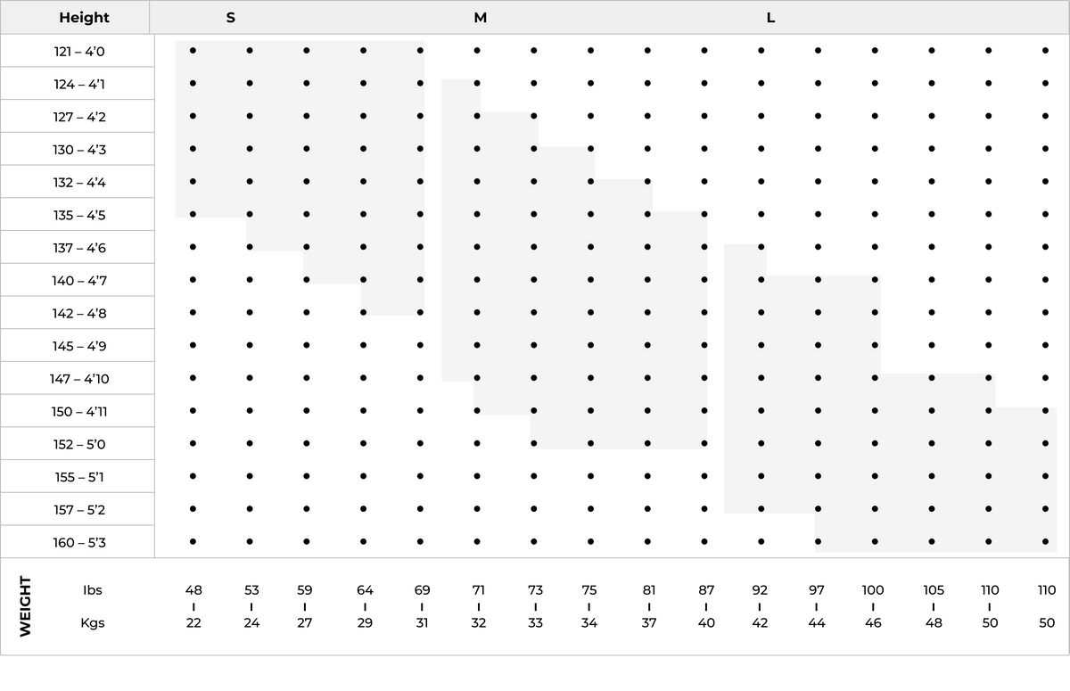4 | 9-10 | 145-152 | 4"9" - 5' |